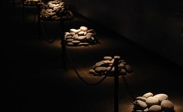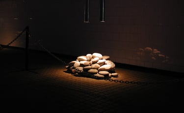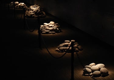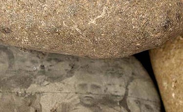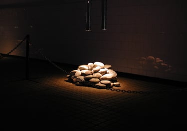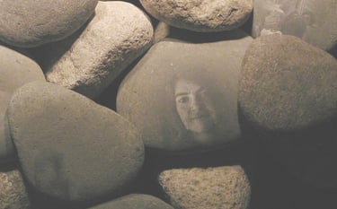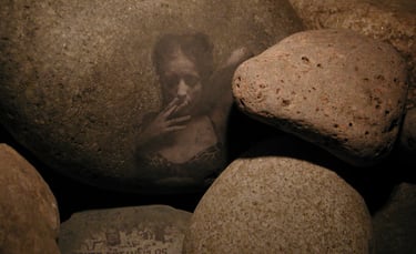 Piedras acumuladas en el piso, una luz las captura , rostros e imagenes dispersos y recordados...